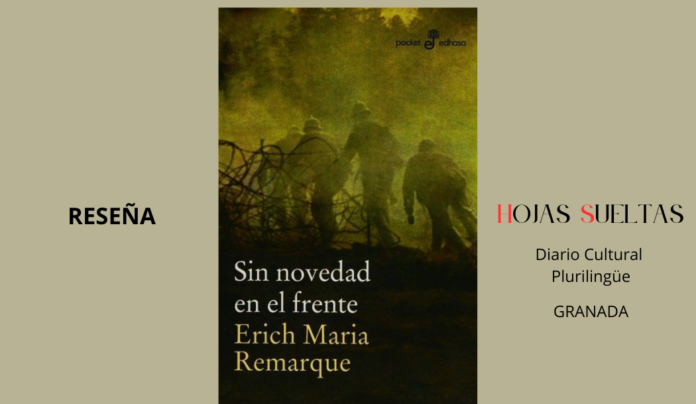 Se aprende mucho en la guerra, sobre todo ellos, esos jóvenes compañeros de aula que esperan que haya una digna compensación a todo aquel zafarrancho que están padeciendo, pero no pueden encontrar nada: esas porquerías del colegio, de los estudios, del sueldo… no son más que palabras repugnantes que da náuseas nada más recordarlas. Te dan un permiso y vuelves a tu casa y ves a tu madre y te pregunta por cosas que no comprendes porque los civiles no entienden nada, no saben que la vida es algo tan insignificante que apenas merece luchar por ella si no es con el fusil en la mano, en esos embudos que producen los obuses que son como sumideros por donde se precipita la mente de Paul, nostálgico de sus queridos compañeros, de los que van quedando, de los que sí que conocen el verdadero valor de la vida.