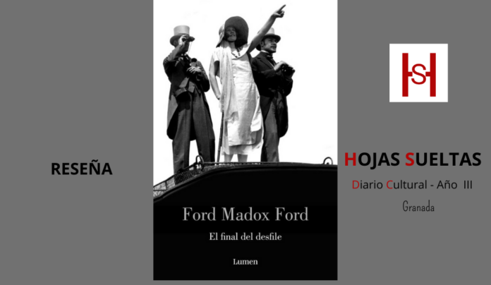 El que tiene por costumbre reprimir las emociones se coloca en desventaja en los momentos de gran presión inesperada. El escritor británico Ford Madox Ford (1873-1939) imaginó una historia muy inglesa, en las que las cuestiones menos importantes de la vida se afrontan de forma impecable sin inmutarse por nada, mientras que en los momentos de confrontación, los personajes se vienen abajo. Así escribió El final del desfile (1924-1928) una monumental novela que se desarrolla antes, durante y después de la Primera Guerra Mundial. Lo que viene a exponer Ford Madox Ford es la caída estrepitosa de un mundo, el victoriano, que se ve arrastrado por la vorágine de la Gran Guerra y queda destrozado para siempre. Aunque la novela se editó en un solo tomo, en realidad se trata de cuatro novelas cuya lectura no es independiente, sino que entremezcla la fabulosa historia de unos personajes que quedan de forma indeleble en la mente del lector.