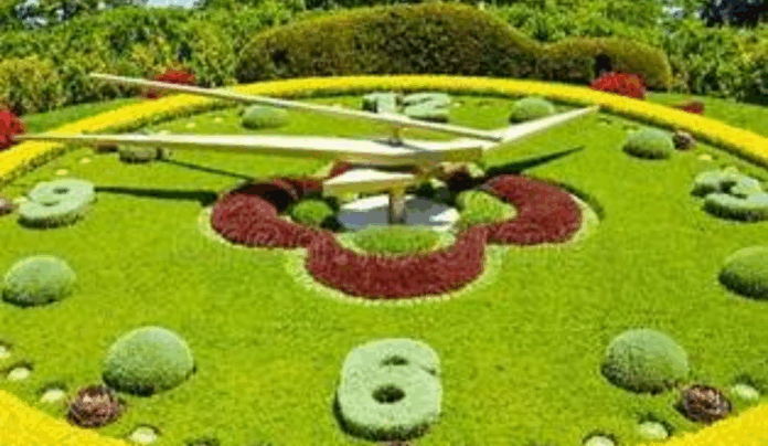 La esfera del reloj está compuesta por más de 12,000 plantas y flores, que se organizan y cambian meticulosamente según la temporada. Esta dinámica exhibición floral asegura que el reloj permanezca vibrante y colorido durante todo el año.