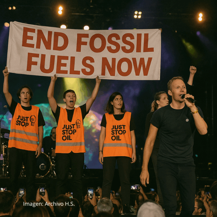 Del 26 al 30 de junio se celebra en Pilton, Inglaterra, el icónico Festival de Glastonbury, que este año ha vuelto a batir récord de asistencia con más de 200.000 entradas vendidas. Sin embargo, la nota polémica se produjo el sábado 28 cuando un grupo de activistas de Just Stop Oil interrumpió el concierto de Coldplay desplegando una pancarta gigante con el lema «End fossil fuels now» mientras Chris Martin interpretaba Fix You.