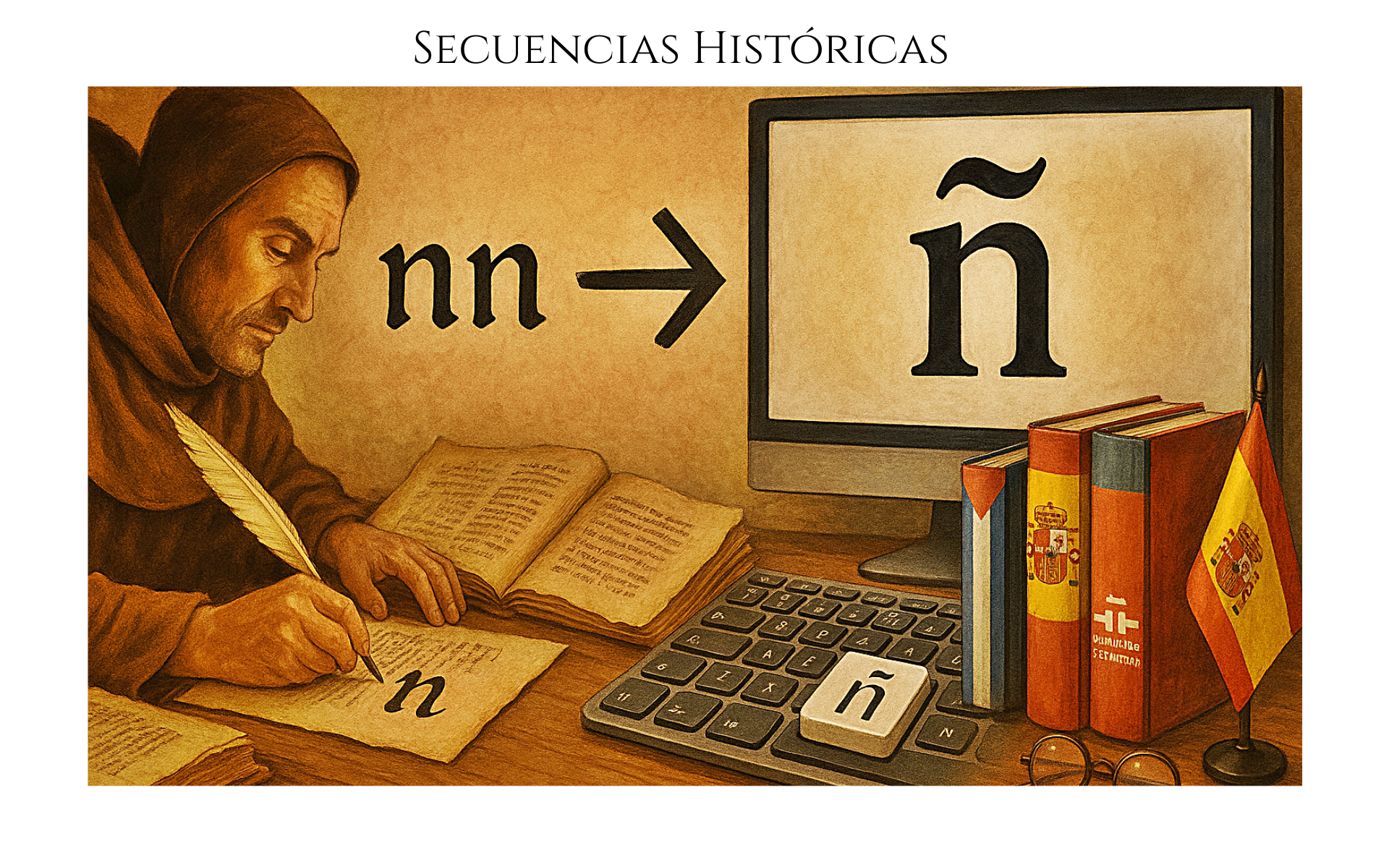 La letra “ñ” nació en los monasterios medievales españoles como una abreviatura del dígrafo “nn”. Su uso se consolidó en la Edad Media, y hoy es símbolo de la identidad lingüística del español, pese a no existir en latín clásico ni en la mayoría de lenguas romances.