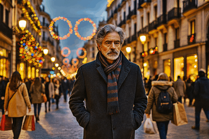 Hoy he salido a caminar sin rumbo por las calles de Argüelles, como quien se deja llevar por la corriente de un río en el que no quiere nadar. Madrid ya se ha vestido de Navidad: luces, música estridente, escaparates como altares del deseo rápido. Todo parece brillar un poco más de la cuenta, como si la ciudad quisiera convencerse de algo que no siente del todo. La gente camina con bolsas en la mano y prisa en los ojos. Parecen felices. O al menos ocupados en parecerlo. Yo camino con las manos vacías y un bolsillo con lo justo para un café. No es resignación. Es logística.