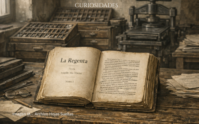 «La Regenta» se publicó en dos tomos entre 1884 y 1885, en un momento de expansión del mercado editorial urbano y de consolidación del realismo-novecentista previo al cambio de siglo. La obra —extensa, de arquitectura compleja y con un léxico muy atento al matiz— planteaba un desafío técnico: componer a mano, corregir y estampar miles de líneas con un margen de error razonable era, simplemente, difícil.