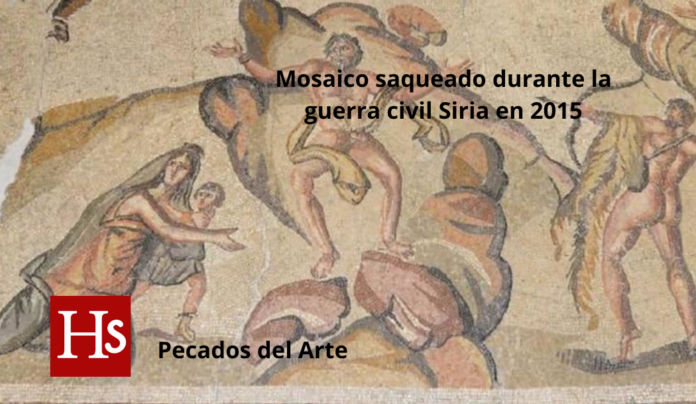 Mosaico saqueado durante la guerra civil Siria en 2015