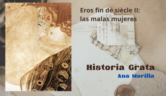 El Eros finisecular era fetichista, sádico y morboso. Sus tópicos fueron la femme fatale, la bruja, la vampiro, la prostituta… Se trataba del mito del eterno femenino, de la mujer destructora de hombres que unía los tópicos románticos del erotismo fúnebre y la iconografía de la melancolía, donde el amor aparecía como una enfermedad –la erotomanía– que devenía en muerte y suicidio.