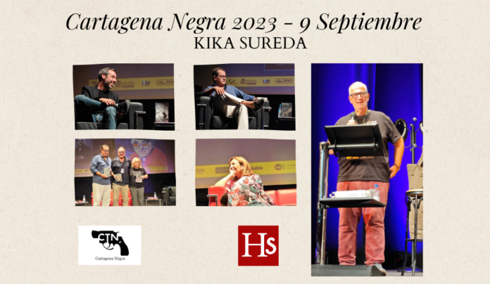 La excusa para que este trío estuviera en el último día en el escenario de Cartagena Negra era la publicación de la octava entrega del universo de Sonia Ruiz. Antonio Parra fue el responsable de la sexta entrega Entre amigos y Susana Hernández la séptima entrega El diablo me visita.