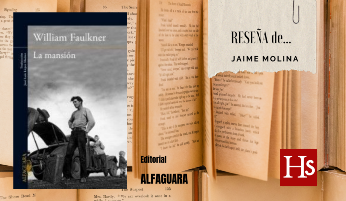 Comencé a leer a Faulkner sin saber quién era, ni la importancia que tenía, ni que su lectura era compleja. Pero hay escritores y libros que llegan hasta uno sin buscarlos. La mansión es el tercer y último volumen de la llamada “trilogía de los Snopes”, que comienza con El villorio y continúa con La ciudad. Todavía recuerdo cómo y cuándo compré El villorrio. Fue un día del libro; yo me detuve en una caseta en la que coincidí con una mujer bellísima, sumamente atractiva. Era extranjera y, por su acento, parecía norteamericana. Paseaba su vista con indiferencia por todos los libros del mostrador y, de repente, su vista se detuvo en uno concreto que tomó entre sus manos, con visible emoción. Se trataba de El villorrio (The hamlet). Cuando volvió a dejarlo sobre el mostrador, fui yo quien terminó comprándolo, en parte por la curiosidad que había suscitado en mí aquella bella desconocida. Y tras aquélla obra llegaron las otras dos partes. Hoy voy a hablar sólo de la última, La mansión, aunque para hacerlo sea inevitable referirse a las otras dos.