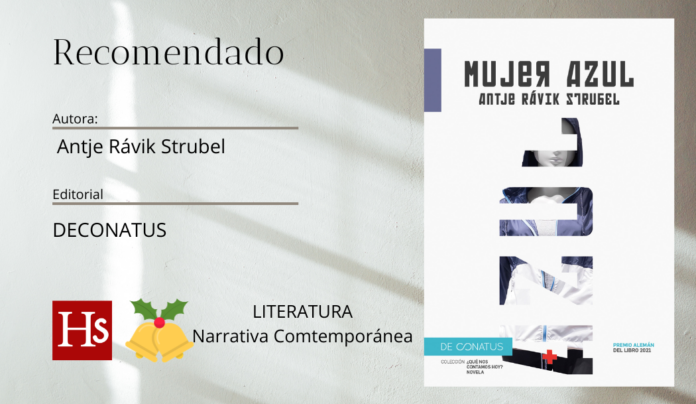 Mujer azul es una novela política. Adina, la protagonista, es una chica criada por su madre en la antigua Checoslovaquia. Han sobrevivido al miedo y a una obediencia anulante. En las pistas de esquí que rodean su casa descubre la vida europea de los turistas alemanes, pero cuando decide dejarlo todo para encontrarse con ese mundo desconocido, comienza un viaje insospechado. Después de una agresión sexual en Alemania que nadie toma en serio, termina en Helsinki, donde conoce a un eurodipotado estonio que se enamora de ella. Mientras él hace campaña por los derechos humanos, ella se enfrenta a una Europa desigual, injusta, hipócrita que nunca había imaginado.